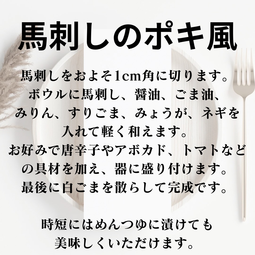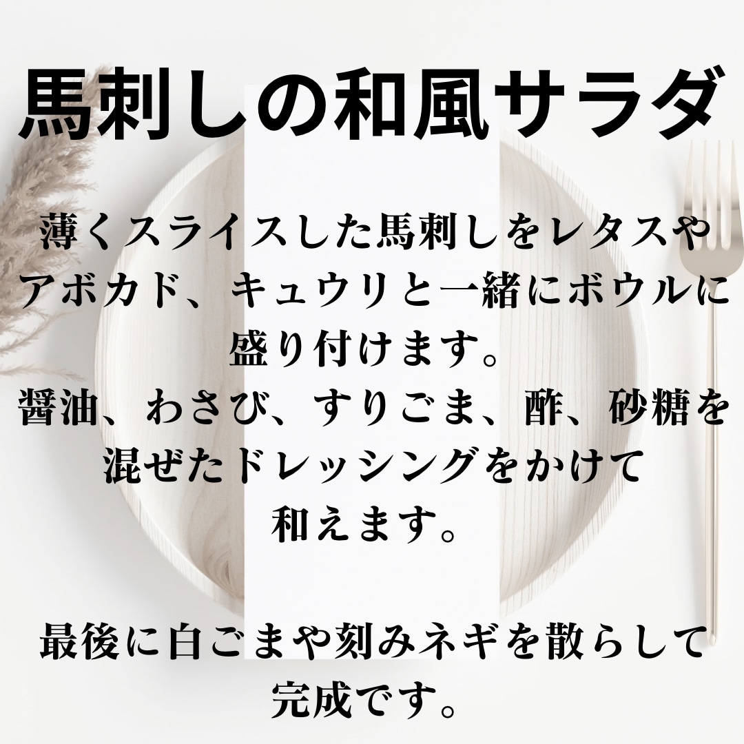 馬刺しでサラダを作ったり生で食べられるからこその、味わいが馬肉にはあります😊