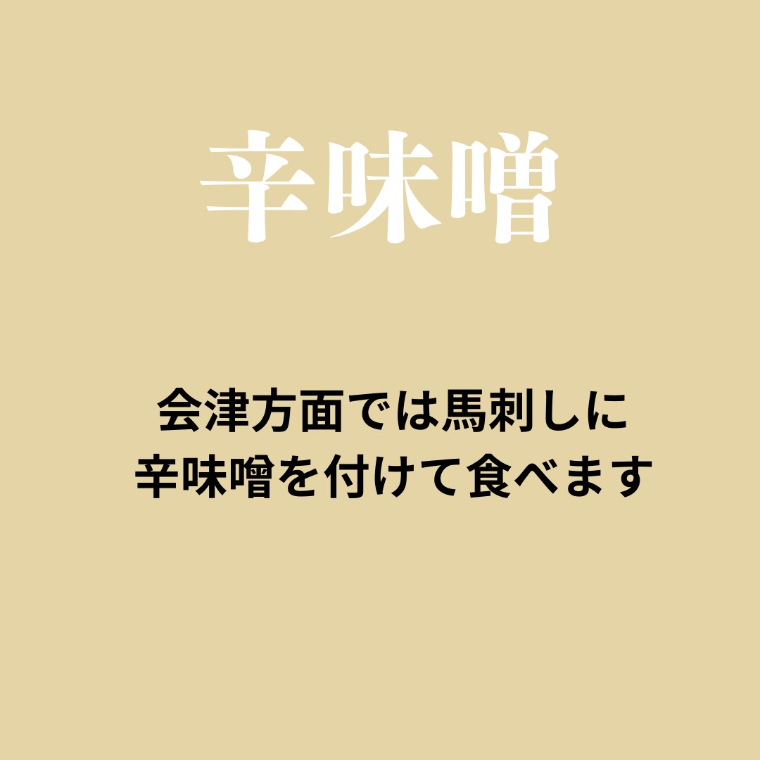 会津方面では馬刺しに辛味噌を付けて食べます。