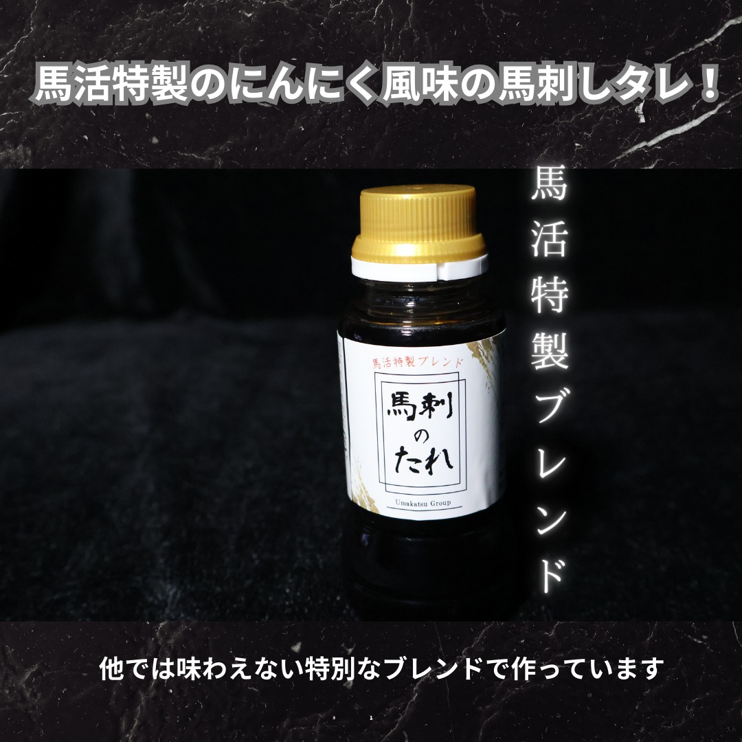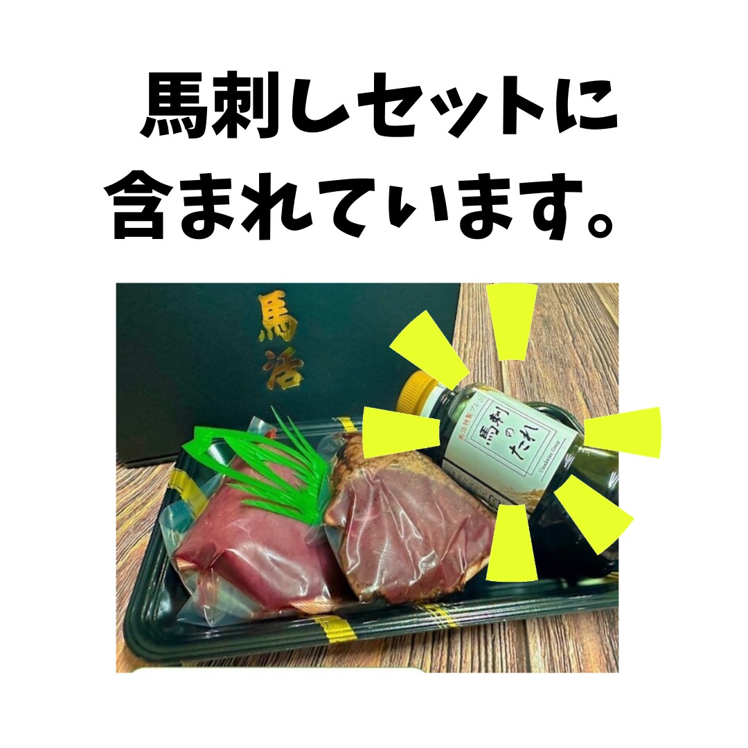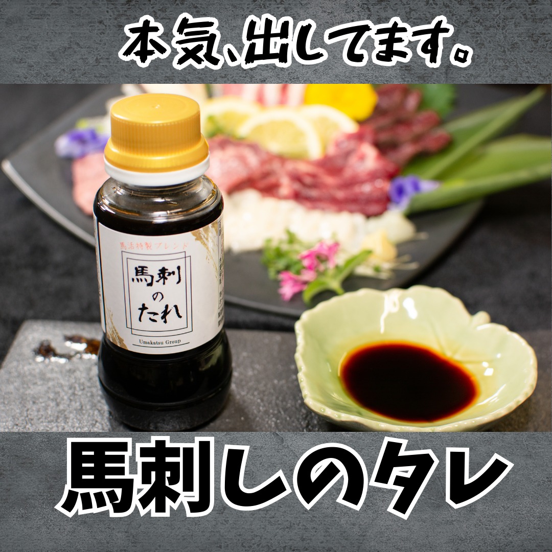 馬活の社長が毎日醤油を飲み半年間かけて開発した絶妙なバランスの甘醤油です。馬刺しとの相性抜群ですよ👍🏻⟡.·
