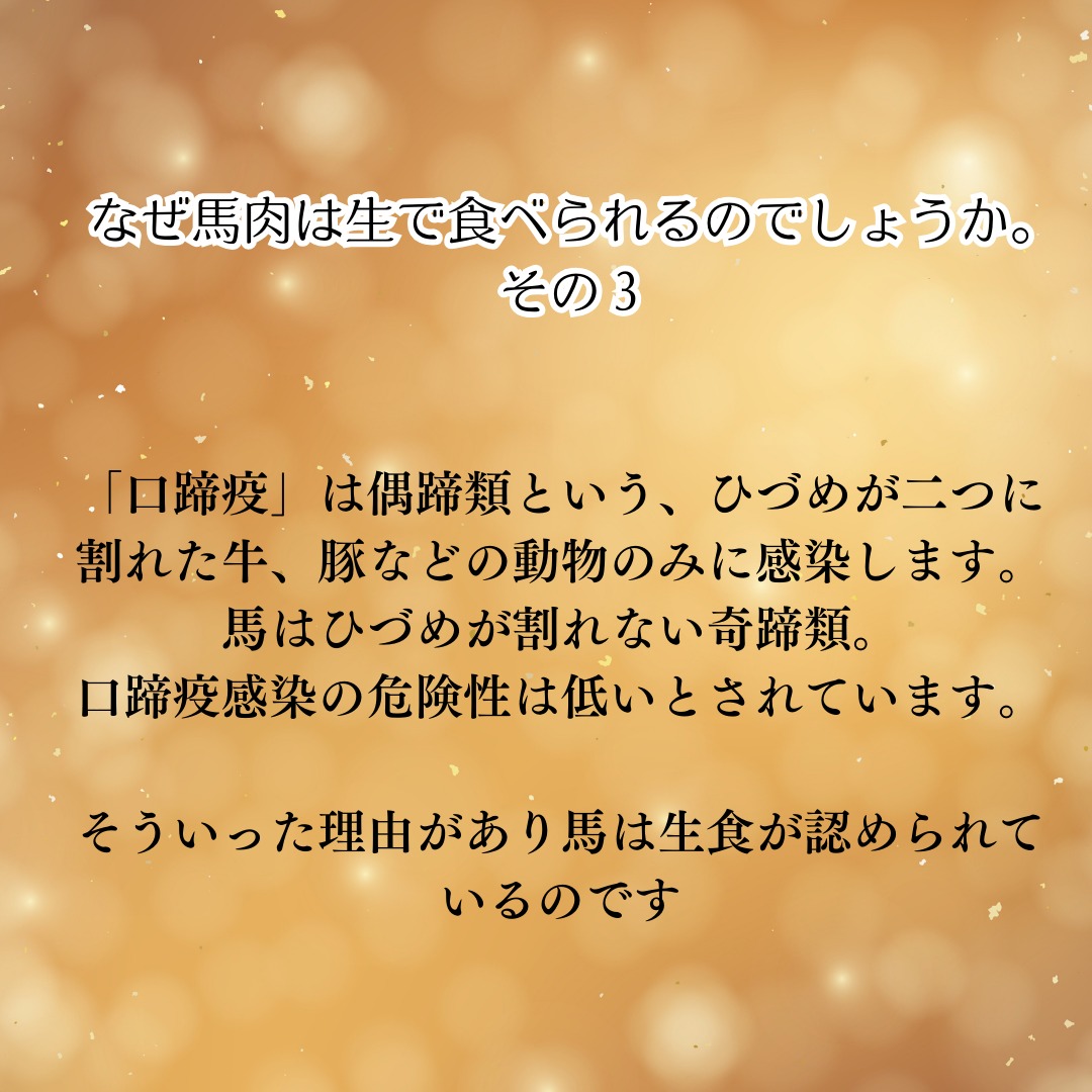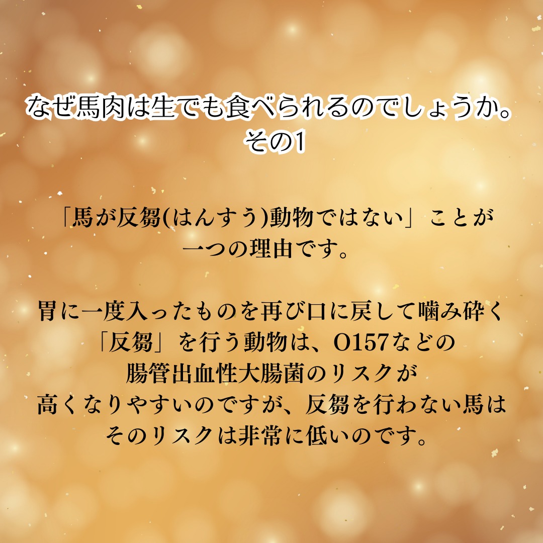 そういった理由があるので馬は生食が認められているのです。