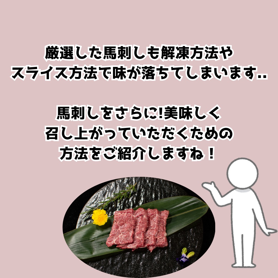 厳選した馬刺しも解凍方法やスライス方法で味が落ちてしまいます..