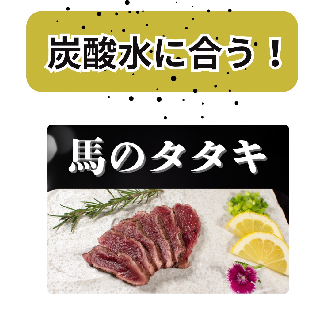 お酒が飲めない方は今は様々な味付きの炭酸水が売っているので、さっぱりとしたレモンやグレープフルーツなどのソーダに馬刺しの甘みが引き立って、お酒飲みの方との食事の席を楽しくさせてくれるかもしれません!🍻