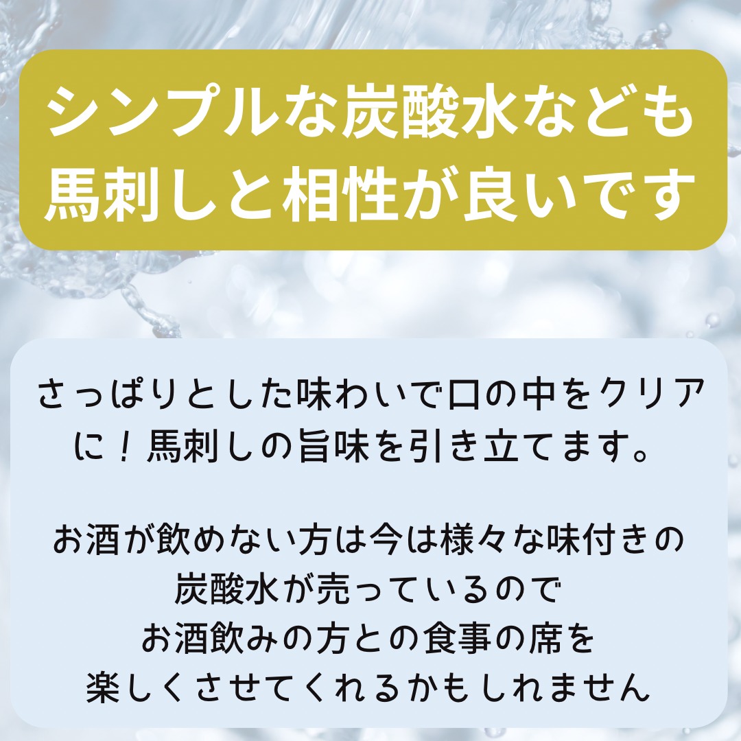 シンプルな炭酸水なども、馬刺しと相性が良いです◉