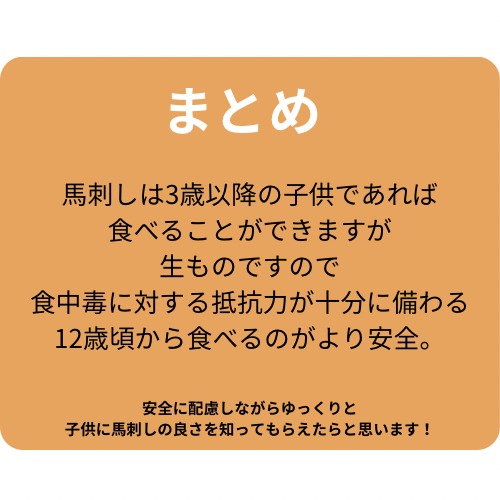 特に心配性の親御さんはこの時期まで待ってから馬刺しを食べさせることもひとつの方法です🤔