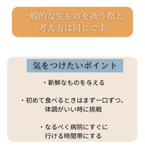 * 初めて食べるときはまず一口ずつ、体調がいい時に挑戦。