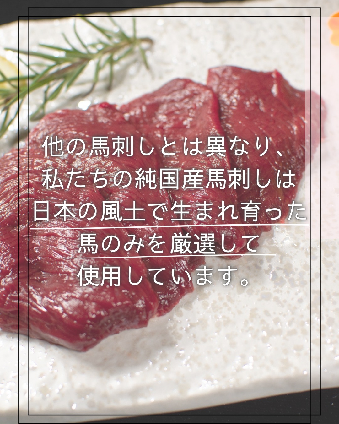 馬肉の産地として知られている熊本からプロの目利きにより厳選し仕入れた