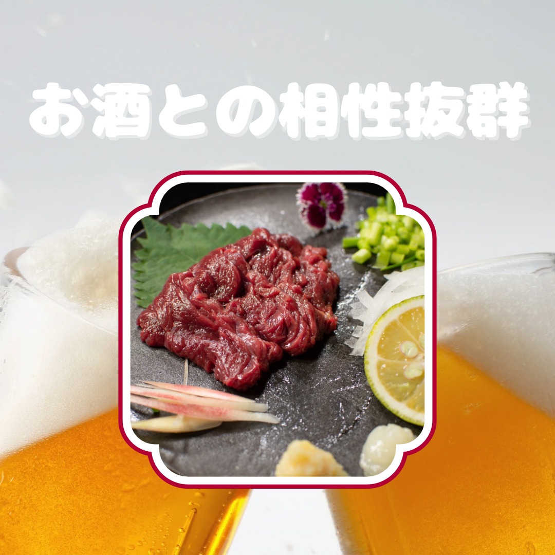 その風味からなる、お酒のアルコールとの相性が抜群✨なので、馬刺しの旨味が引き立つことでお酒の味わいもより一層豊かに感じます。