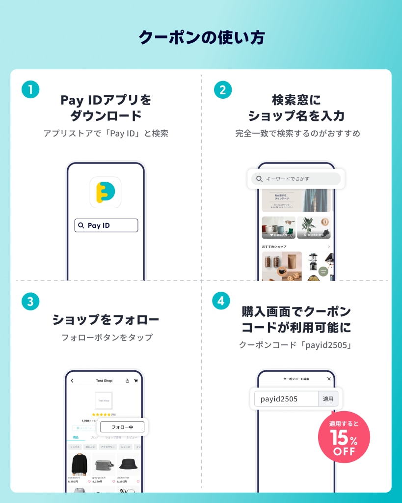 15%OFFクーポン(上限1,000円)がその場で使える!