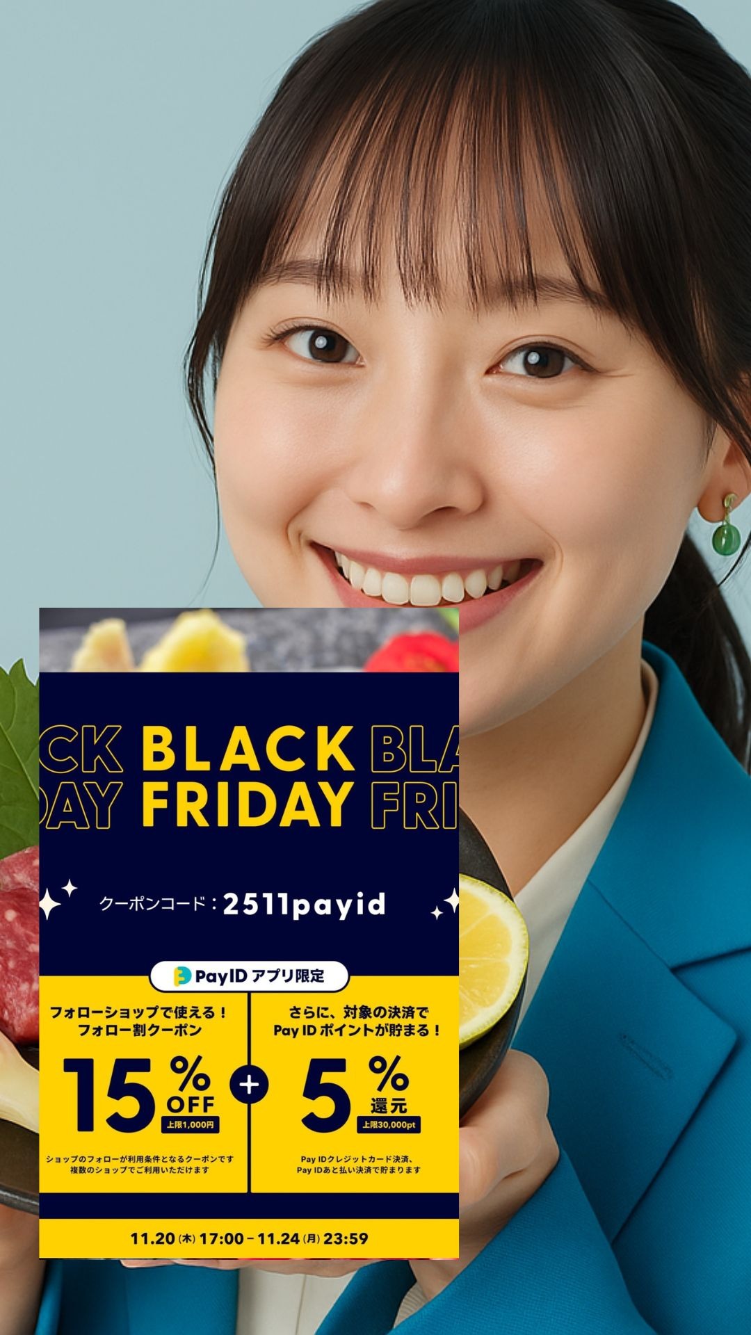 【Pay IDアプリ限定】15%OFFフォロー割クーポン(上限1,000円)